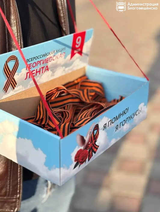В Благовещенске с 1 мая традиционно стартует акция «Георгиевская ленточка», приуроченная ко Дню Победы. 80 городских волонтёров раздадут 40 тысяч лент. Места раздачи: площадь Ленина, набережная Амура, Общественно-культурный центр и другие точки. Кроме того, 1 мая ленты можно получить на железнодорожном вокзале, куда прибудет ретропоезд «Победа».